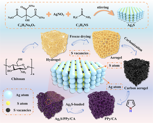 采用化学沉积法在PPy/CA载体上负载Ag₂S纳米颗粒,PPy诱导产生硫空位(V_S)。